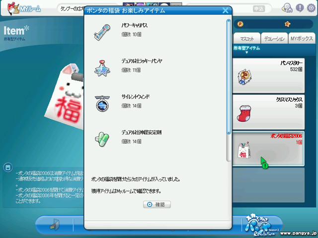 パンヤでは初年越しなので、記念に福袋を一個買ってみますた。