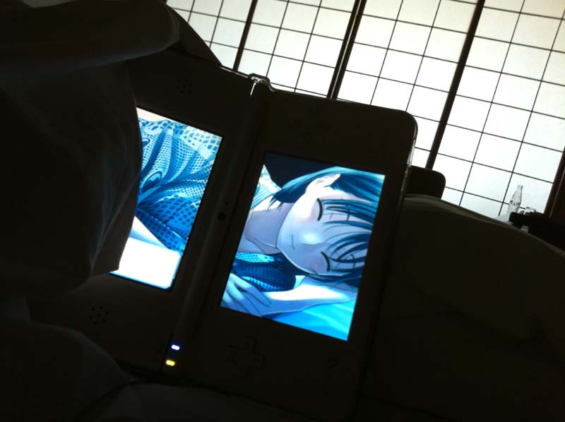 あたりを見回すと、若い男性ばかり5,6人ほどのテーブルにはDSが・・・
