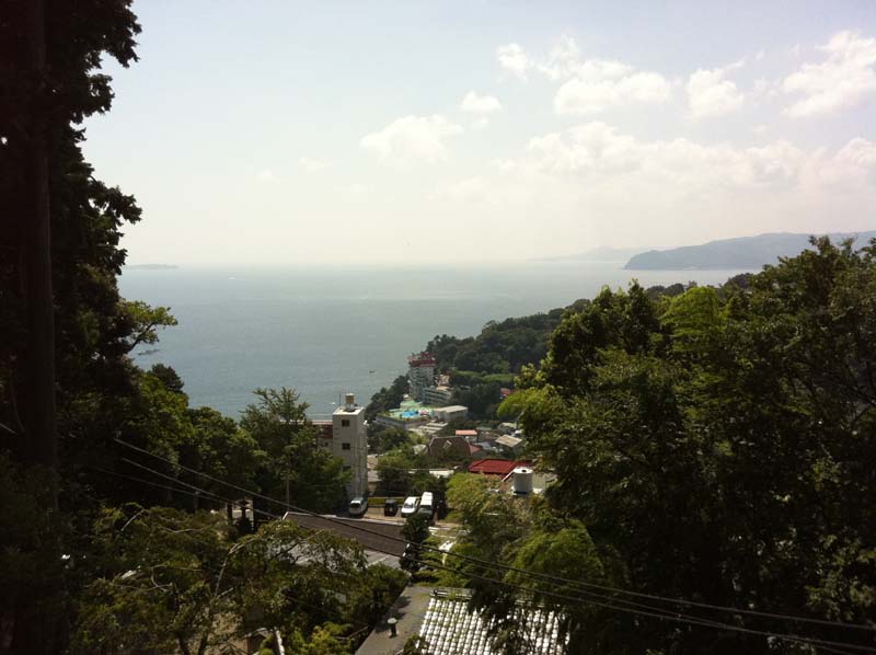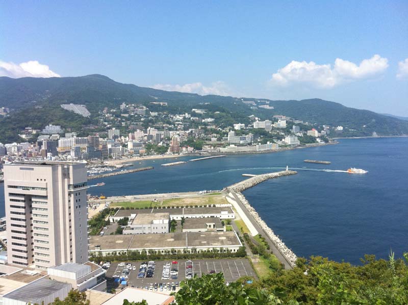 絶景の一語に尽きる景色! ここからの夜景も見てみたかったかも。 初島行きのイルドバカンス号(たぶん3世号?) も見えます。 |